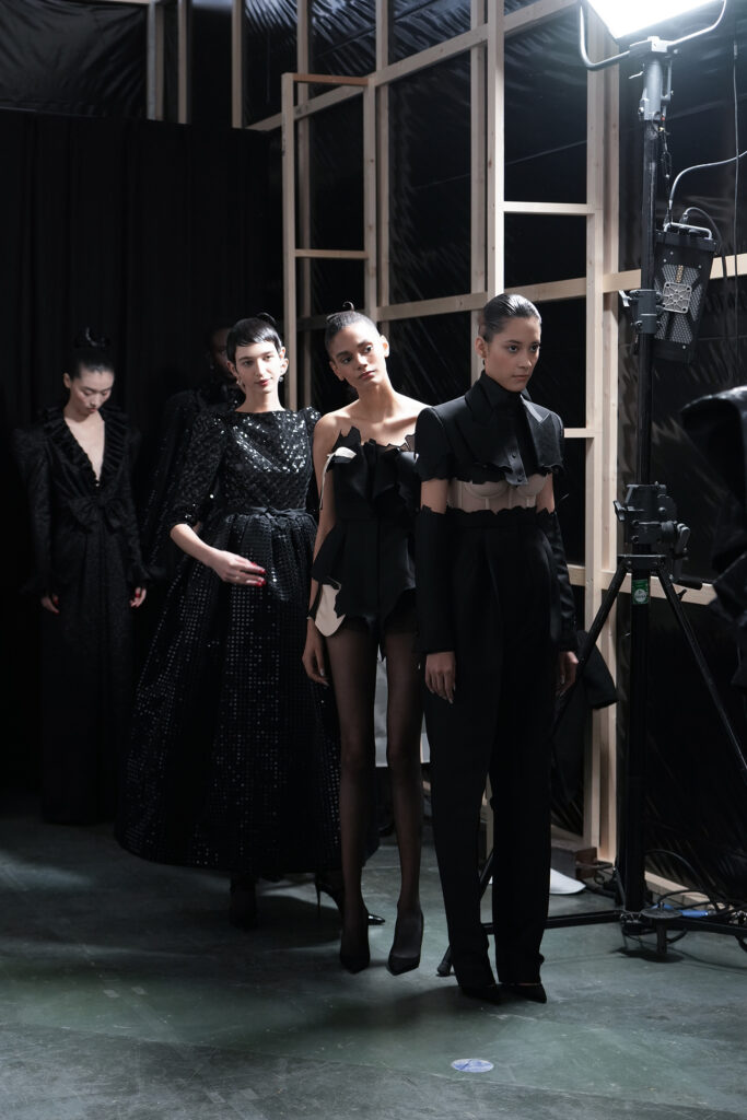 Take a look backstage at the haute coutureshow spring-summer 2024 of Viktor & Rolf in Paris. The finishing touch of make up and hair plus the final check by the designers.