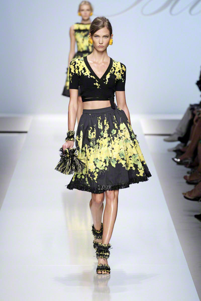 This trend tells an entertaining tale of pretty dresses, fit and flare, full as well as swirling and swinging skirts and sweet, sorbet-like colors. It brings us back to the Fifties as known in movies and books. Prada, the brave, alternated this prettiness with spiced up romance, moving beyond stereotypes. Then surprisingly well coordinated was the return of Fifties swimwear.