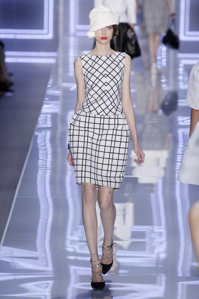 Crosses seemed a big theme in the show, in which models walked on a cross-shaped catwalk. They were used as embroideries on skirts, short jackets and long evening dresses, varying in shape and color.