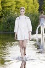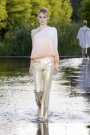 After days of rain the sun came out today. What a relief for designer Alexia van Engelen and her team. She was the only designer this week showing her collection outside. And not just on a regular catwalk. No, they built a runway under water in the pond at the Westergasterrein in Amsterdam.