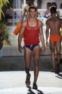 Despite all the show, the collection does have salable items: stonewashed skinny jeans, pleated shorts, T-shirts, swimwear. There was also a huge role for the color green, in the clothes as in the lightning – which represented the blood of the digital era, according to Formichetti. This sounds really like Thierry Mugler.
