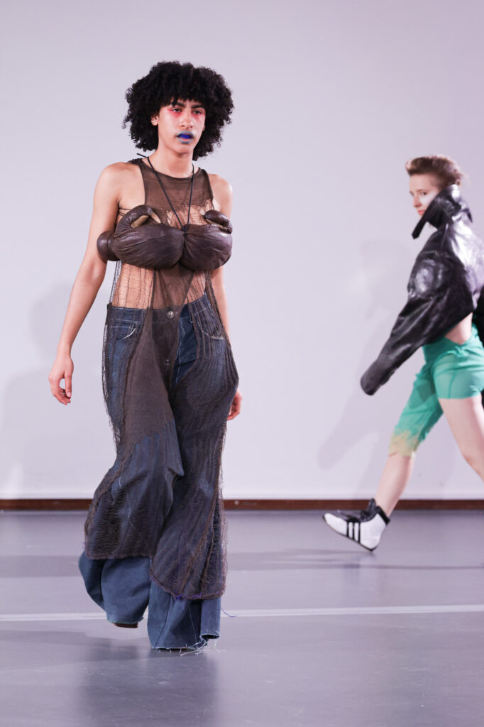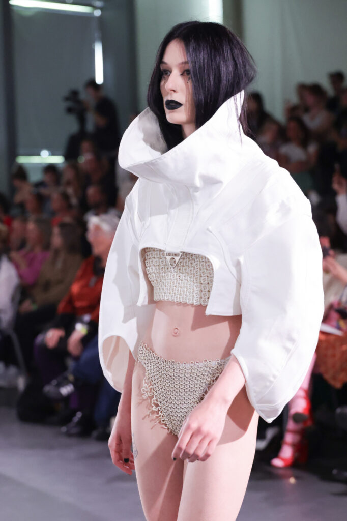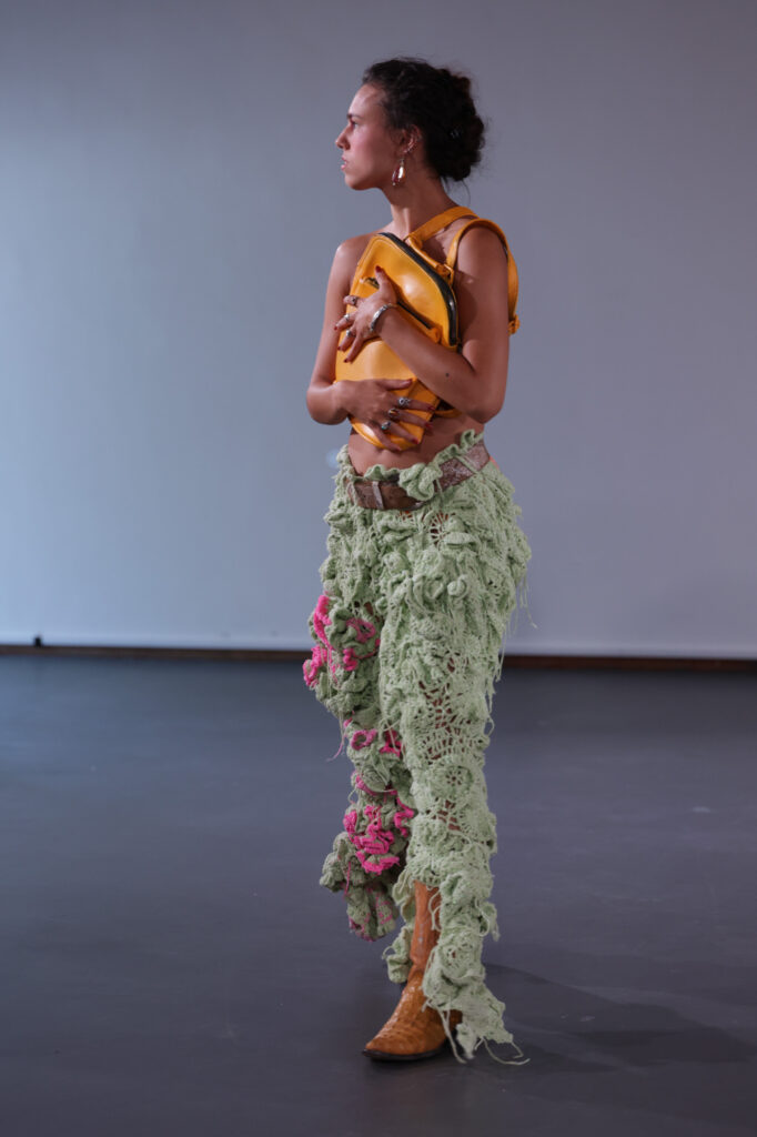 The Lichting 2023 award was won by designer Yousra Razine Mahrah, who just graduated from ArtEZ. Her comment on her collection: “I am not afraid. Not afraid to combine materials or concepts that exist in different worlds. This is also because I am a person that navigates within worlds that are clashing against each other and I am standing in the middle of it trying to make it work.”