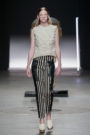 Freedom was written all over the large and elegant silhouettes as the contrary was visible in tight enlaced looks cinched by black ribbons, leather belts and even corsets. Mostly black and white hues as well as mono prints symbolized Cohen’s idea of light and dark. A few touches of dusty pink were pleasant. Cohen’s signature pleats were given a twist, turning into fan structures.