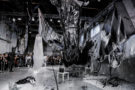 Ever experienced a massive storm? Well at Jef Montes you were in for a treat! No straight up catwalk show here, the young designer set up a fashion experience. An experience for himself as well as for the audience. Jef Montes decided to create the opening outfit of his brand new collection Tormenta (storm) in front of his guests. A chance for us to take a look inside his design studio, see how it’s done. Not your average workplace we tell you! Like a true storm Jef Montes raged around his experience space using all different types of chemicals to create his design. We got to witness all design phases; epoxy at first and finally black ink to cover it all; the dress, the space and himself. The result? Some fascinating designs shown against an eerie backdrop representing Jef Montes’ thought on life in the here and now as well as the hereafter. We’re blown away (by the storm). Quite the experience.