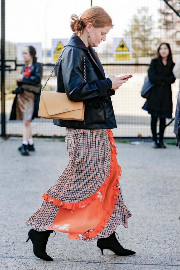 They worked incredibly well in the streets of London: chic checks! And especially in a skirt + blazer kinda context. A pleated or ruffled skirt and an oversized blazer, that is. Oh and let’s not forget the kitten heel booties and cowboy boots. Below a little London streetwear gallery on how to look cool, chic and collected.