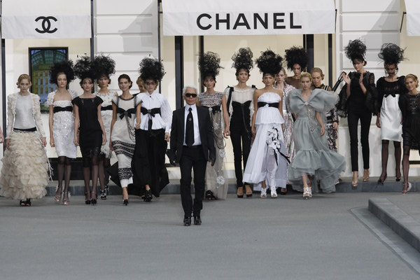 Karl, or Kaiser Karl, is best known for his creative director function at Chanel at which he started in 1983 (after having worked for Balmain (1955) and after making a name for himself designing poetic party dresses at Chloé (1963)). In the decades that followed since his arrival at the luxury fashion house he managed to turn the brand into one of the most iconic labels in the world. Chanel even contracted him ‘designer for life’. His over the top, million dollar fashion shows at the Grand Palais (turning the place into a supermarket, airport and a frozen world (incl. that XL iceberg) were unrivaled. A ticket to his show was still the hottest ticket in town during any Paris fashion week for the last couple of seasons.
