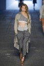 Maybe because of his collaboration this year with the Gap, Alexander Wang has had all-American sportswear on the brain. Wang’s subject was that most popular red-white-and-blue pursuit: football. His goal was investment pieces and the investment elements were, mostly, hooded and utilitarian outerwear pieced together from a variety of fabrics, including nylon and army canvas.