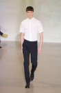 Thanks to a very kind PR-assistant at the door we made it into Jil Sander last minute. It was – as always – worth trying. Very plain, very sober and very white! White shirts at navy trousers dominated the collection and Raf Simons just added a small silver outline to shirts or cut the frontparts of jackets different which gave the models – together with their bowlcut hair – a neat and nerdy look. The portraits by Japanese artist Foujita gave it a more arty edge.