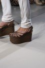 For some models walking the runway was a tough job in the past fashion weeks. Of course the shoes were to blame. Not only were they high as ever, they also had the craziest shapes. They seemd somewhat inspired by clogs and that made them look rather clumsy. The most outstanding examples of this ‘clog-shoe’ were those of Alexander McQueen. He showed some great fashion forward ones, which were no less than twelve inches high. With reptile prints they looked futuristic and animalistic at the same time. Passing by to the beat of Lady Gaga’s new song they indeed looked rather Gaga to us. Yet they might become a huge hit. At least McQueen wasn’t the only designer with clog-shoes in his show. Celine, Dior, DSquared, Givenchy, Bottega Veneta and Ferré showed some clog-variations as well. And not to forget Louis Vuitton and Chanel. Their Swedish clog-like shoes will probably become the most copied of all next spring. (Tess van Daelen)