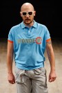 You can leave it up to the Belgian Walter van Beirendonck to send out a happy show with a clear message. This time it was the Trademark- and Copyright-sign that formed the essence of the collection. He showed them on socks, shirts, jackets etc. Walter look-a-like models were parading in quilted bubbly fabrics, bright colors and swimsuits.