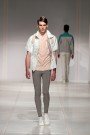 Piotrek Panszezyk took the hottest fashion item of the moment, the jumpsuit, and gave it a whole new classy image. He gave all (of his many) designs a feminine, classic twist by adding some sort of airy trail to them. He showed one in black, one with lace on the sides, one white, one red, one purple. All looks varied slightly from each other, yet were still an obvious collection. The only misplaced item was an animal printed fur design. It didn’t look feminine or classy and had no connection to the rest of the collection. One other thing we didn’t understand were the loose ends on – for example – the olive green short and the collar of the purple outfit. But altogether Panszezyk’s collection was pretty impressive.