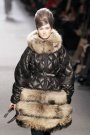 Fur has been seen on many catwalks like Gucci, Oscar de la Renta, Michael Kors, Alexander McQueen and Donna Karan. But everyone is working this trend in a different way. A handful of designers went for the glamorous and sexy look, with front runner Gucci. Frida Giannini went for an over the top 70’s glamour look which made everyone greedy. Every outfit was topped off with furs in different colors, like turquoise, yellow ochre and emerald green. That same extravagant appearance was spotted at Jean Paul Gaultier, with luxurious looking furs on the coats trim and waist. There was even a model wearing a white fox over her shoulder, shocking! Funny detail, even the grandma trolleys were covered with fur.