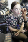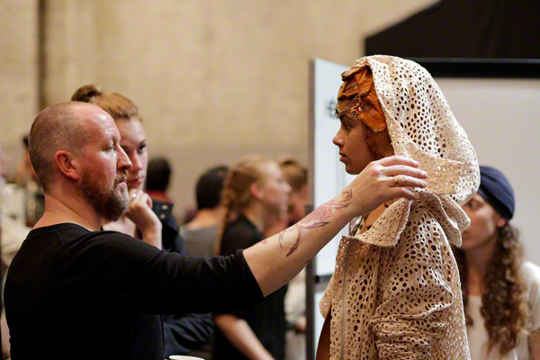 Take a look backstage at the show of Claes Iversen, where make-up artists and dressers do their best to get all the models ready in time.