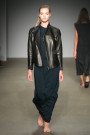 In a world of fast fashion, designer Annemarie Westen wants to go back to craftsmanship, the point where the fashion process starts from scratch. “My work is never really based on a solid concept, it’s more about the feeling. It surpasses time or age and particular fashion seasons. I aim to give women a certain feeling, I want my clothes to strengthen who they are. Be equal to yourself. Sexyness and confidence is not depending on boobs or butts, but knowing yourself.” Something Annemarie herself has no trouble with, as this collection was full of her familiar signatures. Her designs are simplistic, sophisticated and wearable without losing elegance. She plays with subtle changes in the usual, using sharp graphic layers as a sign of strength, while the soft springy materials such as silk and wool emphasise a woman’s grace. But this time around she added more draping details in maxi-dresses and trousers. For a summer collection though, the colour palette was quite gloomy with only black, white and green. “Black is usually the basic pallet I’m working on, because it’s my favourite colour. And use of colour can cause distraction.” It perfectly fitted the dark, heavy music of Marilyn Manson and Pantera that reached our ears, and gave the show an even stronger heartbeat and a don’t-mess-with-me feeling. Exactly as she had hoped for.