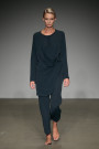 In a world of fast fashion, designer Annemarie Westen wants to go back to craftsmanship, the point where the fashion process starts from scratch. “My work is never really based on a solid concept, it’s more about the feeling. It surpasses time or age and particular fashion seasons. I aim to give women a certain feeling, I want my clothes to strengthen who they are. Be equal to yourself. Sexyness and confidence is not depending on boobs or butts, but knowing yourself.” Something Annemarie herself has no trouble with, as this collection was full of her familiar signatures. Her designs are simplistic, sophisticated and wearable without losing elegance. She plays with subtle changes in the usual, using sharp graphic layers as a sign of strength, while the soft springy materials such as silk and wool emphasise a woman’s grace. But this time around she added more draping details in maxi-dresses and trousers. For a summer collection though, the colour palette was quite gloomy with only black, white and green. “Black is usually the basic pallet I’m working on, because it’s my favourite colour. And use of colour can cause distraction.” It perfectly fitted the dark, heavy music of Marilyn Manson and Pantera that reached our ears, and gave the show an even stronger heartbeat and a don’t-mess-with-me feeling. Exactly as she had hoped for.
