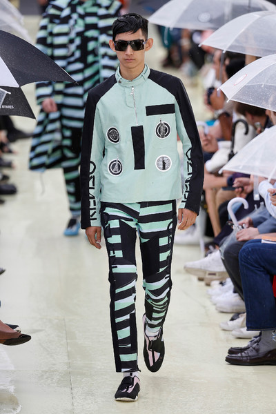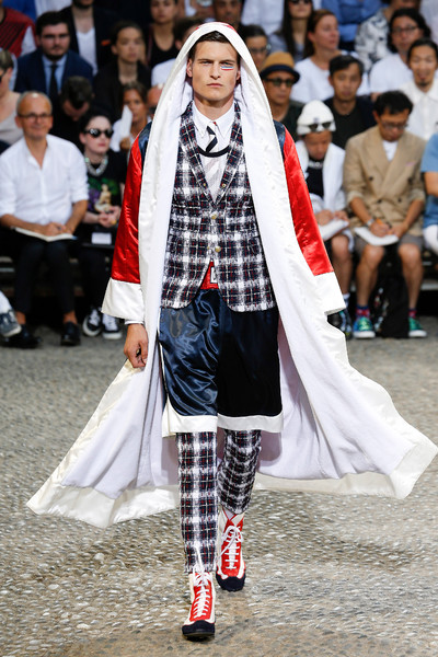 Boxing pants, leather motor suits and sporty stripes represented the sporty vibe for summer 2015 at Givenchy, Kenzo, Margiela and Moncler.