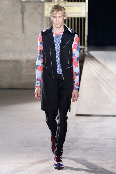 The sleeveless jacket made his appearance in leather, denim and cotton, mostly worn on top of T-shirts and shirts at Lanvin, Ann DeMeulemeester and Raf Simons.