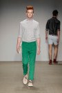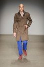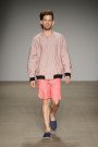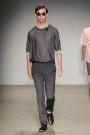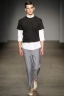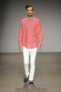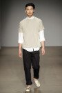 Willem de Kooning Academy graduate (in 2005) Mevan Kaluarachchi presented himself for the first time today during Amsterdam fashion week. The range of menswear items he showed – named Wardrobe – was not just a SS2014 collection, but included looks for both summer and winter. Pieces for all seasons, so to say. From shorts and tees to jersey pants and trenchcoats. Sloughy shirts had special buttons or collars and were longer in the back than in the front. Most of them were loose and airy, even sheer almost. The color palette was a perfect fix of shades suitable for menswear; from red and turquoise to grey and navy. Colors that can be worn all year round, like the clothes that, according to Mevan, are qualitative, comfortable and will last. His creations are meant to stay, let’s hope Mevan is a keeper too!