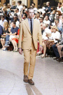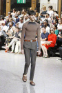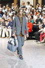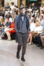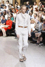 All the ingredients of a Galliano-collection were there. The long jackets, funny accessories, slim suits in gray silk or crinkled white linen. The message was at the end of the show, when two mustachioed Galliano- doppelgangers took their turns. They surely do miss him.