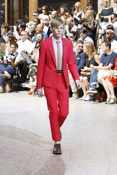 Colors were kept natural, except for a series of suits which came in red, yellow, purple and blue.