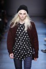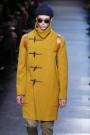 Before the show of Raf Simons even had started, rumors about the designer leaving his commercial partner were already spreading around. And the rumors seemed true, but did not affect the show and the collection at all. Simons sent out a calm, yet inventive collection with a mix futurism (pants in black PVC, mohair aprons) and preppy college style (sweaters, checks, Fair Isle knits). Duffel coats, in camel and brights, were the main statement. One voluminous version came in purple neoprene – worn with a sharp shirt and tie and a scarf – while another cocoon-shaped design in tomato red fastened with a single closure at the neck.