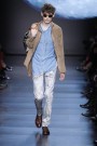 Turtlenecks or band-collared shirts added color. In a season with a lot of outerwear the coats Pilati showed were rather refreshing because of the trapeze-silhouette and use of fabric.