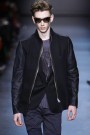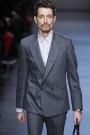 For the YSL:-menswearcollection Stefano Pilati found inspiration at Savile Row and the Mod style so unmistakenly linked to Sixties London and still there. Choosing this theme the designer left the wider pants behind (a fit other fashionbrands are showing this season) and made cigarette-pipe trousers and big shoes the foundation for innovative jackets. Some got a velvet trim, breast pockets, compact lapels and clustered buttons which added a youthful character to the new tailoring.