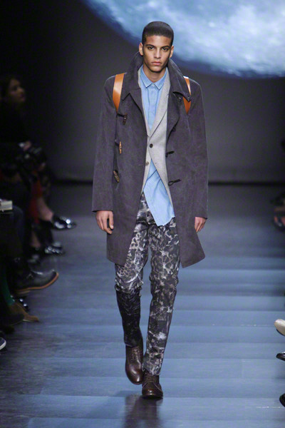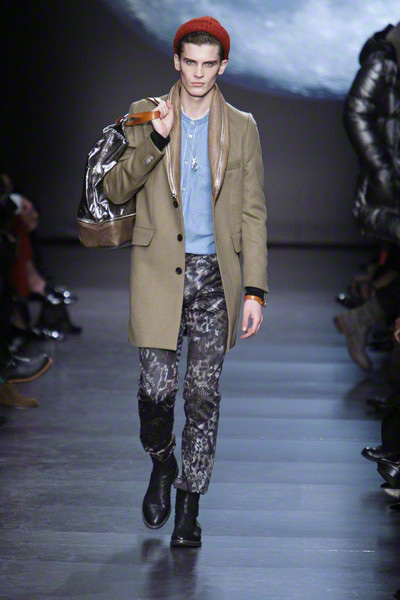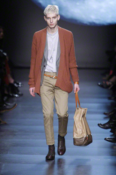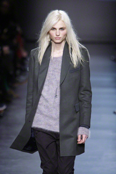 Turtlenecks or band-collared shirts added color. In a season with a lot of outerwear the coats Pilati showed were rather refreshing because of the trapeze-silhouette and use of fabric.