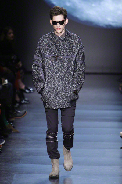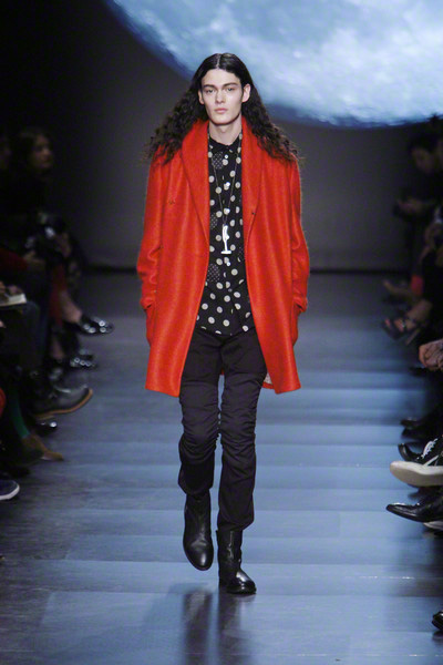 Before the show of Raf Simons even had started, rumors about the designer leaving his commercial partner were already spreading around. And the rumors seemed true, but did not affect the show and the collection at all. Simons sent out a calm, yet inventive collection with a mix futurism (pants in black PVC, mohair aprons) and preppy college style (sweaters, checks, Fair Isle knits). Duffel coats, in camel and brights, were the main statement. One voluminous version came in purple neoprene – worn with a sharp shirt and tie and a scarf – while another cocoon-shaped design in tomato red fastened with a single closure at the neck.