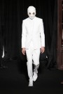 Black and white. Those were the shades Ann Demeulemeester used for her latest menswear collection. Thin models with remarkable bone structure and slick combed back hair showed her new creations. The designs were somewhat futuristic and covered up the biggest part of the models bodies.