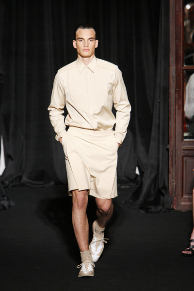 Kris van Assche seems capable of letting his severe, sartorial look go en soften it with lightweight and youthful tailoring. ‘Simplicity is the true luxury’, according to the designer. And so he presented sleeveless trenchcoats, lightweight linen parkas and paper-light jackets. Black, gray and sandywhite were his main colors. Low-slung trousers were tucked into sandals.