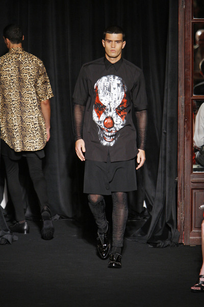 Of course with this Tisci proved he has some guts, but it didn’t make a lot of sense. And it surely didn’t make his clothes look better. Cause apart from some print-less jackets the collection was not really a success. Most clothes looked over the top; lace sweaters, transparent blouses, leather pants, spinal-cord necklaces and a T-shirt with a joker face as a print.