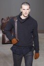 The clothes came in masculine shades like dark gray, black and brown. Paul Helbers designed knitted cardigans and double-breasted, long, woolly coats. As seen in other f/w menswear collections the LV-jackets – as well as his bags – often had leather details. The leather used for some coats almost looked fake, while it had no creases, tears or what-so-ever.