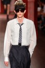 ‘The best thing about fashion is the freedom to be’, says Albert Elbaz – creative director of Lanvin. And from this point of view the Lanvin-man can wear anything he wants, from sleeveless jackets, to shirts with a tine bow on a neckline or at the waist, kimono-cut shirts, high waisted khakis, puff sleeves or silk shorts. Lucas Ossendrijver did a wonderful job here, to mix the glamourous with the more adventurous.