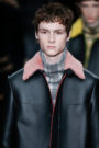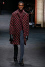 Some wore businessman clothes such as camel coats, trenches and lightweight topcoats, some of which were slit up the sides. Suits were fitted while trousers flared slightly, and had little slashes at the bottom à la unzipped track suits. Other models worked a street-y look, dressed in puffers — with a lumberjack check — or a patterned bomber mismatched with plaid trousers, and a baseball cap.