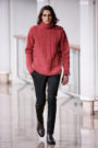 Among the highlights was a soft black-and-red blanket coat with a triangle pattern, inspired by traditional Jewish textiles, a dark suit with an original, off-kilter tartan drawn by hand, and hoodies and tops adorned with collaged photographs of neo-classical statues.