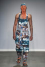 Any customer of Julliëtte Heijnen can be rest assured he’ll be looking as original as can be. It’s hard to even give the collection a general description, since all twelve menswear looks were so diverse. With the search for new silhouettes and interdisciplinary presentations as a starting point Heijnen’s male models sported XL T-shirts and sweaters with black linings, holographic prints (in a lovely color palette), raincoats, mesh tops, 7/8 pants and macramé tops worn as dresses. Accessories in the form of pompoms, twisted scarfs, a fishnet mask, double buns and a knitted beanie topped it off. Outfits and styling exercises you can hardly describe in words, you just need to see.