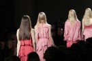 The Bottega Veneta collections used to have a certain edge, colorwise, in shape or in the use of fabric. The fw-collections looked a little bit dreary though. But that doen’t mean there was nothing we loved: the fluid looking dresses in purple and gray, the coats in shiny techno-fabrics, the eveningdresses in pleated, sheer organza, the pantsuit with green metallic shoes and the pink leather pants with lighter colored shirt.