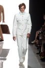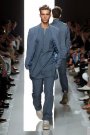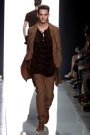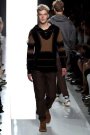 Tomas Maier took Seventies California as his source of inspiration. The result: loose, pullover tunic tops in buttery brown, gray, and pale olive. Some had  lace-up details at the neck or hippie fringes at the bottom. It all had a relaxed and luxurious feeling. The crumpled suits and lightweight coats looked great, especially in those dusty colors like red, cement, teal and taupe.