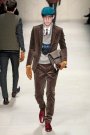 Form-fitting tailored suits played the major role in this collection, some of which came in plum, olive or teal velvet — and others made from herringbone or tweed wool. For a more formal feel, Bailey put velvet collars onto tweed trenches and topcoats. The outdoor-feeling was given by all those typical outdoorsy sports-gear like fishing vests, quilted or not, shooting jackets in leather or suede, chunky sweaters and cardigans.Luckily the polka dot ties and shirts, appliqué fox heads on knits and leather gloves with punkish gold studs gave that typical Burberry edge to the clothes. It’s all in the details eventually.
