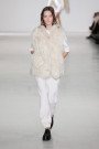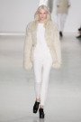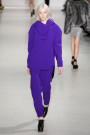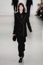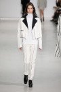 Apart from an all red look and a selection of full on purple ensembles Costume National told a true monochrome story today. Fresh faced models (hardly any make-up, hair undone; the kind of streetstyle coolness we know from most French editors) worked the modern, cool f/w2014 collection, which formed the ultimate mix of menswear inspired creations (pinstripes, boxy fits, large collars and suits) and elegant feminine designs (sexy dresses, sheer blouses and lots of (faux?) fur. Like the first crispy white look with a pair of loose fitting pants, brogue shoes and a winter proof fur waistcoat, worn carelessly, hands in the pockets. Followed by a more sexy attire, short dress, bare legs, high heels. A few navy & black designs were less impressive, but other than that, f/w 2014 just felt right. The CN woman is not trying to hard to fit in. She’s not desperate to look sexy or desirable. And she doesn’t dress the way she dresses for anyone else but herself. That’s why the CN woman, or girl if you will, is so damn hot. Yes, especially in that tux-inspired black suit at the end.