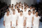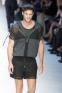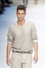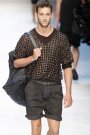 In a press conference video Domenico and Stefano did something designers rarely do; they introduced there favorite models. Paolo Anchisi, Travis Bland, Adam Senn, Tim Ruger and Guy Robinson. Those guys wore the showpieces of new summer collection. A cotton jumpsuit, a netted leather T-shirt, a perforated leather jacket and a lightweight collarless jacket. After that some details were highlighted, like small pockets, 1 cm stitching and washed satin. Just to give you an idea of the collection.