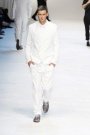 Today at Dolce & Gabbana it was all about the net and the nets. Perforated and netted items were seen throughout the whole collection. A collection which started off quite dark (black and burgundy), but became lighter (white and light grey) towards the end.
