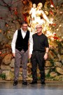 And all that devotion surely paid of. The (more than 80) protagonists looked impeccable in the classic creations. Dolce and Gabbana opted for inevitable winter shades like black (for coats, suits, velvets and cashmere), grey (for coats, suits, T-shirts, vests and embroideries) and white (for poplin shirts, inlaid shirts and for lace pillow-style embroidered jackets and shirts). Yet they added rich colors at the end used on jackets and silk T-shirts printed and embroidered with flowers. A few religious icons here and there, but the designers wisely said goodbye to last season’s Blackamoor imagery.