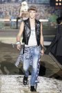 Dean and Dan Caten, the twin-brothers of D-Squared got inspired by the coolest summer festivals for their spring- summer collection 2012. Colorful maxi-dresses, denim shorts, destroyed concert-T-shirts, a denim jacket, a hat and high heeled Wellington-boots is all you need. But of course, a real festival-groupie does have all those items in her closet already!