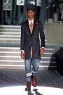 While most labels hire more and more asian models, Dean and Dan only sent all black models down their Milan runway. They wore casual ready to wear designs and were given a geek-y touch by high hats and nerdy glasses.