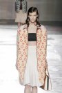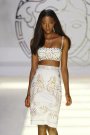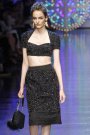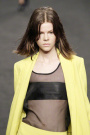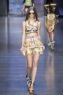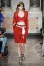 It might be a more reduced and considerate attitude, yet true fashion lovers do go for show-off. A rich variation of midriff-baring sweet nothings show once more the likes for frivolous looks. Where the Belgium professor Helmut Gaus once ‘proved’ that skirt-lengths dropped during depression, these research results surely don’t correlate with top-lengths moving up in depth of crisis. In Milan we note barely-there bandeaux at Versace, lush wrap tops at Blumarine, puffed and crafted tunnel tops at Prada, where Emilio Pucci goes gypsy with intricate lace trimmed bra-tops.