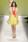 Blugirl goes innocent, with sweet florals in pretty pastels, where Fendi adds a touch of concealed drama in ladylike looks. Fabrics as well as shapes have pin up appeal; lovely lace tops, frilled aprons and pretty plisse skirts. Adding to the lust for print, as we noticed in New York, Milan shows Fifties inspired patterns in the loveliest of colour schemes.