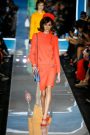 Inspired by his own JFK conspiracy theory Jeremy Scott came up with the idea to let Jackie Kennedy walk his show. So from Kaia Gerber (the first look) to Gigi Hadid (the final look) all Moschino models had the same Jackie O appearance (and hair style!). In his own little fashion fantasy Scott figured Jackie Kennedy might have been an alien and so some of the models were painted orange, yellow and green. Besides this ridicilousnous the clothes were as signature Scott as you’d imagine. Bright colored skirt suits, superhero inspired, figure hugging evening gowns with capes, illustrated pop art printed dresses. Bags, hats, earrings, belts and shoes to match. All very glam, very pop-y, very Barbie (a familiair territory for the designer), yet by no means anything Jackie O would have actually worn to any of her official appearances. Luckily presidential candidates and First Ladies aren’t necessarily Moschino’s target audience and this sexy, statement collection will without a doubt please the real fans of the brand. They might even consider the full body paint.