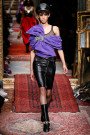 If you were ever wondering if it’s possible to wear a chandelier as a dress? Well, here’s your answer: yes you can. Even better: you áre the chandelier itself. Or follow Sia’s lead, swinging from the chandelier and live like tomorrow doesn’t exist (if you haven’t seen the Carpool session with Sia and James Cordon, please do so as she sings like it’s her last day). And if that was the case (don’t get scared now, it’s just hypothetical), why not dress like if it’s your last day. Make it big, make it bold, make it edgy and never back down, even when everything’s on fire. Picturing the Moschino logo flaming in orange letters, can someone please call 911- the fire department? Jeremy Scott has lit up Milan city. Which he did with giant theatrical dresses with satin bows in purple, yellow and pink fastened with shimmering brooches, strapless ruffle dresses combined with a t-shirt underneath, a black floor-sweeping dress embellished with chains, a pink strapless dress with a leather bodice. If you’re more into playing it cool on the down low, you have the zip-adorned black leather, lots of denim items, hotpants, t-shirts with playful Moschino prints, fishnet tights and biker boots. Finish it off with some big accessories like a ‘Warrior Milano’ belt, leather caps, black leather gloves and as many chains as you can get. It was only towards the end that everything got the fire lighter treatment: burnt holes and sweeps of black and grey. But what would you expect with those fierce attitudes and cigarettes hanging in those ears? So we couldn’t help but playing Jimi Hendrix’s Fire over and over again in our heads. ‘Just play with me and you won’t get burned. Let me stand next to your fire. Let me stand next to your fire.’